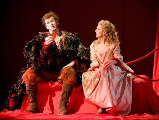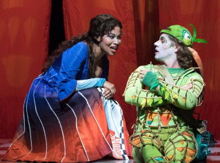 b9.異国の王子様が到着するまでの間、パミーナちゃんは「愛を語る男性なら優しい心をお持ちでしょう」と鳥人パパゲーノと愛について語り合いました。鳥人パパゲーノは「金髪で胸元が大きく開いたピンクのドレスのパミーナちゃん役の歌手の方が好みです」と思慮分別のない事を言っています。道化役だから仕方ないのか。