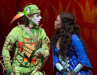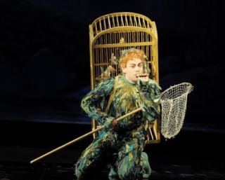 b7.初演時の鳥人パパゲーノのイメージです。鳥の着ぐるみを着て鳥を呼び寄せるパン・フルートを吹き鳥を捕まえる網を持ち捕まえた鳥を入れる鳥籠を背負っています。また道化の役をしています。夜の女王から魔鈴(魔法の使える鈴)をもらい王子タミーノの従者として捕らわれのお姫様のパミーナちゃんの救出に向かいます。日本にも八咫烏や烏天狗など鳥人がいますがイメージが違います。