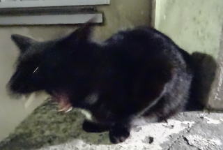 14.パパは右手で焼き鰹を持ち烈ちゃんの手前10cmに差し出しました。パパは左利きなので右手でエサの焼き鰹を持ち左手で烈ちゃんの頭部を痛くない程度に叩く作戦を立てました。すると九郎ちゃんならそのまま焼き鰹を口にくわえますが、烈ちゃんは左手でパパの右手をネコ・パンチで叩き焼き鰹を落とそうとしました。烈ちゃんは悪い子ですね。パパは烈ちゃんの頭部を痛くない程度に叩きました。烈ちゃんに初めて触ったのですが、タダ同然の短毛のネコちゃんでした。何の珍しくない感触でした。長毛(ロング)のメーン・クーン種の値が32万円超なら長毛(ロング)になり損ねた中毛(セミロング)の九郎ちゃんに半額の16万円超を付けても良いのではないでしょうか?。野良で短毛種で雑種の烈ちゃんに値を付けると幾ら位でしょうか?。その答えはタダ同然です。しかしその値で取得出来る人間は猛烈・強烈な烈ちゃんを捕獲出来る人間のみです。捕獲しても大柄で日本の室内では狭すぎます。猛烈・強烈に室内で暴れまくりそして人間に懐く事もないどうしたら良いのでしょうか?。