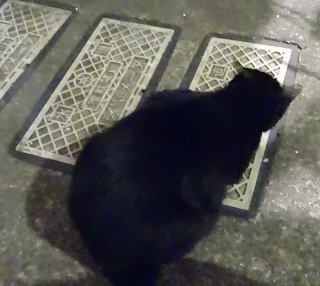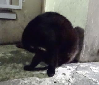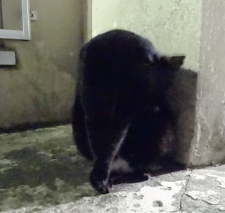51.漆黒の闇の中の活ちゃんです。フラッシュをたかなくても白茶のネコちゃんなのでハッキリ写っていますね。
