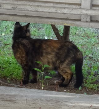 8.アメリカン・ボブテイル種は別名「短尾のメーン・クーン種」と呼ばれており長毛(ロング)が原種です。負けタヌキちゃんのフサフサの中毛(セミロング)は父系(設計図)がアメリカン・ボブテイル種でも母系(材料)が短毛(ショート)なのに中毛(セミロング)の様にのびるブリティシュ・ショートヘア種だったのでしょう。九郎ちゃんも原種に近い雑種だったのでしょうか?。負けタヌキちゃんやキジ虎三姉妹の場合は長毛(ロング)になり損ねた中毛(セミロング)と言う表現が適切なのかもしれません。
