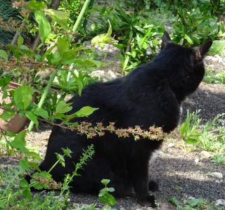 46.ハゲ頭ですがフサフサの中毛(セミロング)の九郎ちゃんを人間の女性に例えると髪が鎖骨より長いが乳房にはとどかないセミロングなのでしょう。ついナデナデしたくなります。しかしこの長さで熱を吸収する黒毛だから真夏日(30度以上)・猛暑日(35度以上)になると熱中症で行き倒れるのでしょう。