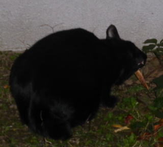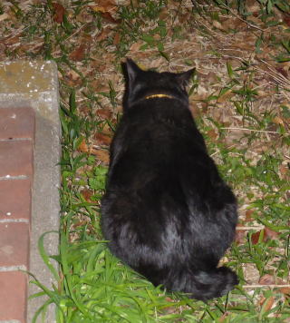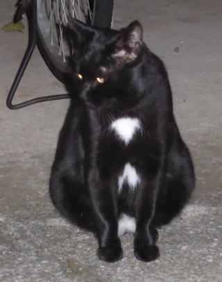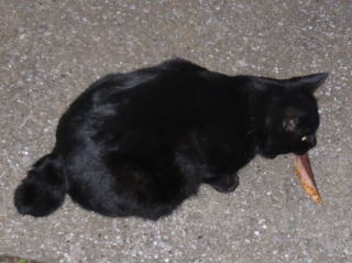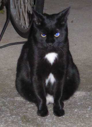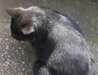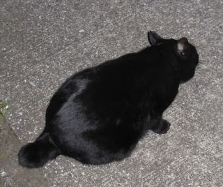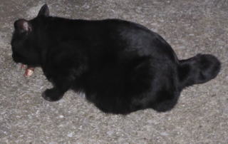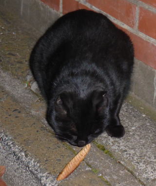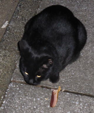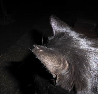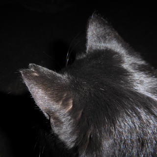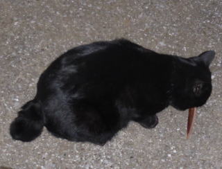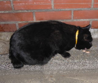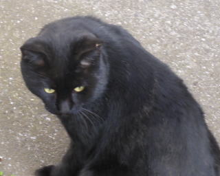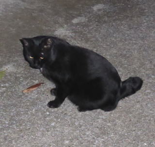 27.今年の秋に生まれた二か月位の黒猫ちゃんです。基本的に逆五角形の輪郭に日本猫の雌猫の体形ですが、黒豹柄の黒毛の毛柄、耳、目、鼻と耳裂け妖猫の九郎ちゃんと細かい部位では共通点があります。アメリカン・ボブテイルの九郎ちゃんが日本猫の母親に産ませたと考えるとその存在を否定できません。猫と話が出来れば「お父さんは誰なの?」と聞けるんだけど...。