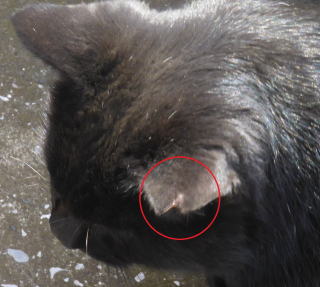 自宅から300m先の駐車場まで大遠征して他の猫ちゃんに喧嘩をしかけていた悪ガキ九郎ちゃん。ついに喧嘩で左耳が噛み切られてしまった。これで「左耳がV字に裂けているのが悪ガキ九郎ちゃんです」。と個体識別できる様になった。喜んでいいのか悲しんでいいのかわからない。