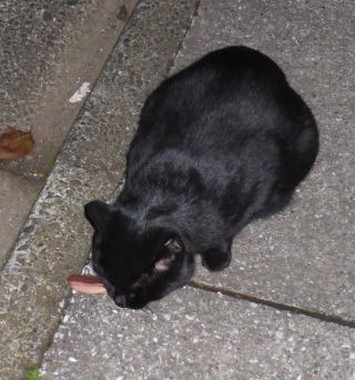 13.自宅から300m先の駐車場で前にもイジメた事のある黒白の雌猫を追い払った後で別の雄猫と激しいバトルをしていた声がした。