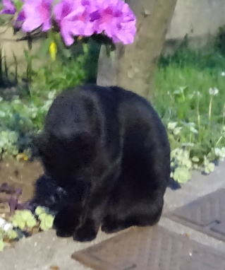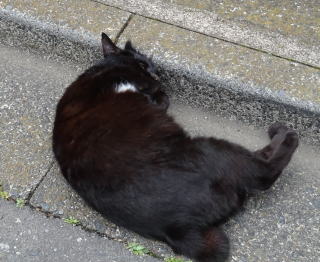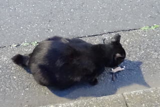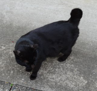8.春夏になって九郎ちゃんの茶毛化が始まりました。お腹の当たりの毛が茶毛になっています。明るい太陽の紫外線を浴びると茶毛に見え暗い所では黒毛に見えるのは黒猫ちゃんも人間の女性も一緒です。今の時期だけ九郎ちゃんは貴重な雄猫の三毛猫に擬態しています。アメリカン・ボブテイル種の原種に近い雑種の九郎ちゃんでもタダ同然から100万円の価値を付けて良いのでしょうか?。