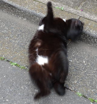 北斗の拳も宜しくママが九郎ちゃんの経絡秘孔を突くと九郎ちゃんはゴロニャンを始めました。しかし副作用があったのでしょうか?。九郎ちゃんは女性用の靴の中敷を見つけると匂いを嗅ぎ始めました。九郎ちゃんが雌猫のお尻の匂いを嗅ぐのは当たり前ですが人間の女性の靴の中敷にフェロモンを感じたのでしょうか?。