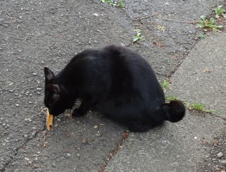 32.焼き鰹を食べている九郎ちゃんに隙がありません。同じ雌猫からは泥棒しまくっても狂暴な九郎ちゃんにはお手上げです。