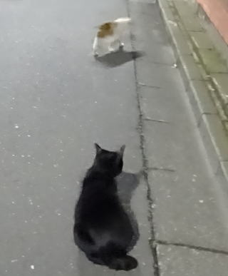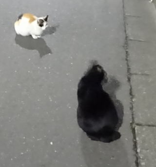 21.チャトランちやんとチャッピー君の妻の三毛猫が駐車場に現れました。