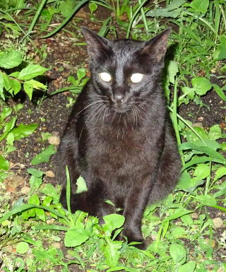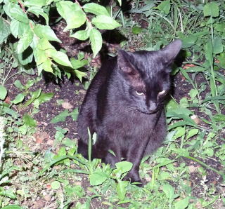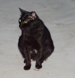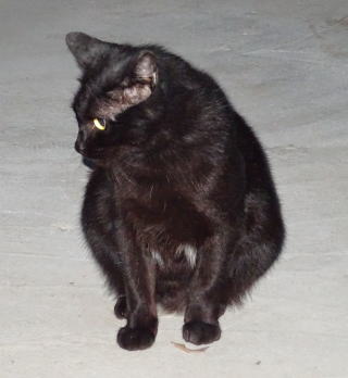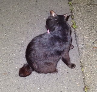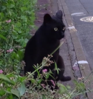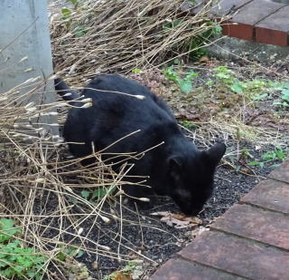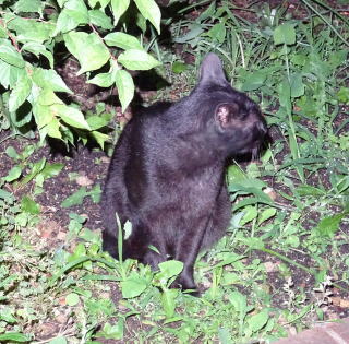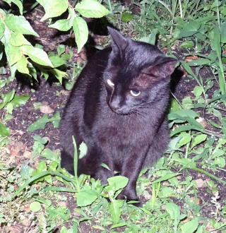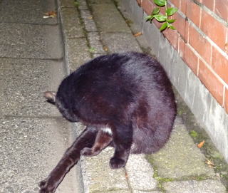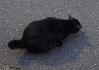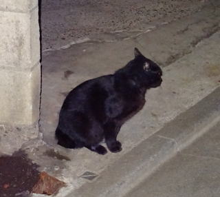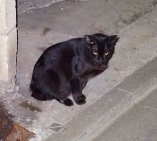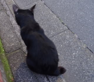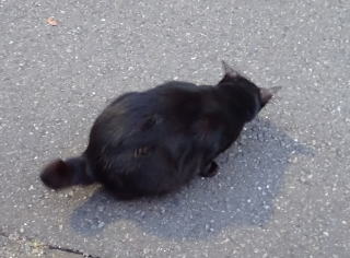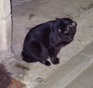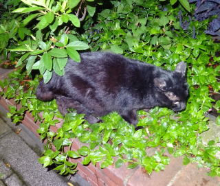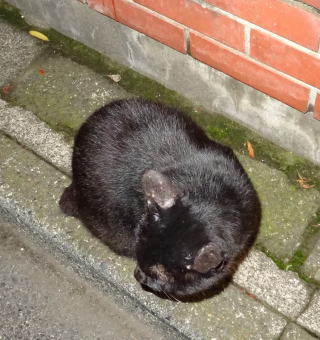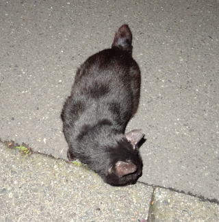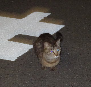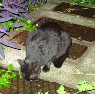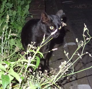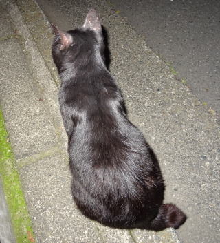 38.弱い雌猫は実に臆病に感じます。忍ちゃんが漆黒の闇に紛れて黒毛とキジ虎の二匹の子猫を連れて外出しました。弱い雌猫と子猫にとって天敵はあぶれ雄です。雄猫が地上を支配している間は物陰や床下などに隠れています。