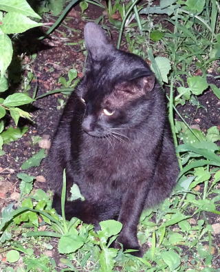 37.木上登子(きのうえたかこ)ちゃんも目と耳の間がモヒカン刈りをした様に薄くなっています。これは黒猫の特徴なのですね。女の子なのでハゲタヌキの様に頭がハゲていません。