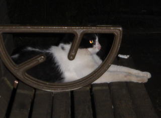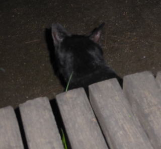 28.なんとパパの座っていたベンチの下から九郎ちゃんが出てきました。毎晩の様に九郎ちゃんはクーちゃんを狩りに見立てて襲い遊んでいます。クーちゃんも逃げるしかないね。