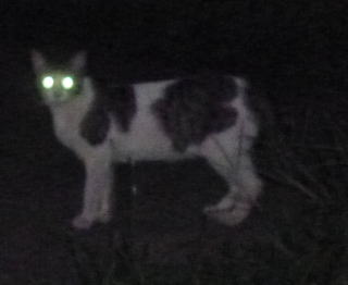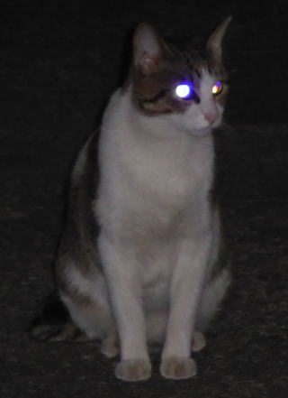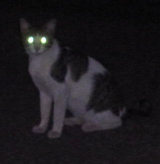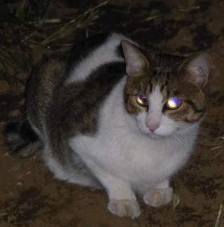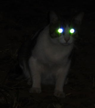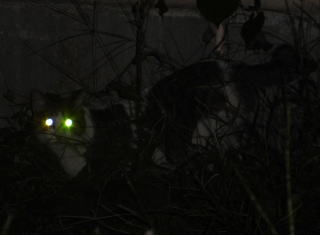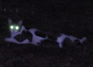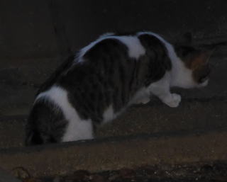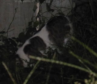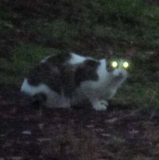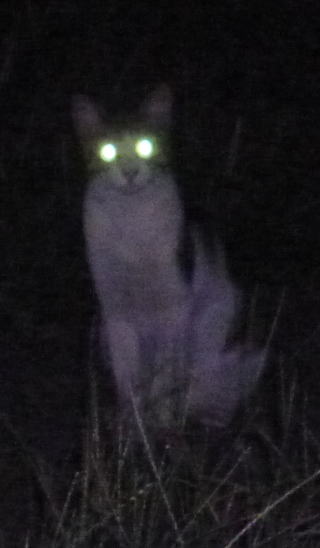3.「パパお帰りなさい」。子猫の時は胴体が短く手足だけが長ったけど成猫したら胴長になった。アフリカのエチオピアのアビシニアン高原で夜狩りをする野獣みたいに見える。