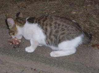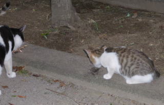 4.悪ガキ九郎ちゃんからのイジメから解放された百合子ちゃん。以前は繊細な女の子だったのにうるさいほど鳴く様になり、昨日は焼き鰹の袋を切ろうとしたパパの左手を爪で傷つけ今日はネコパンチした。百合子ちゃんは豹変した。