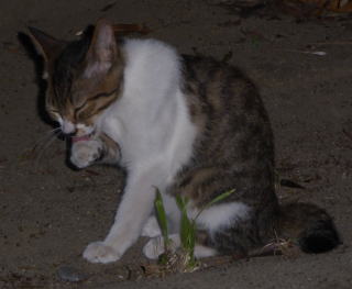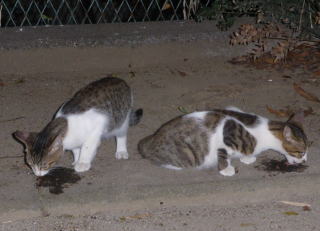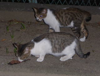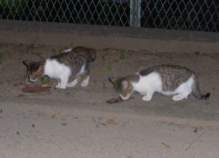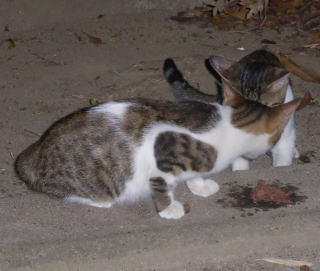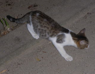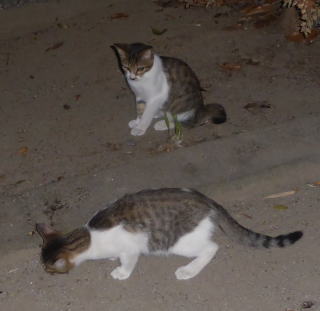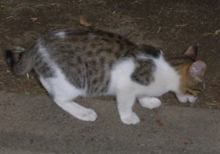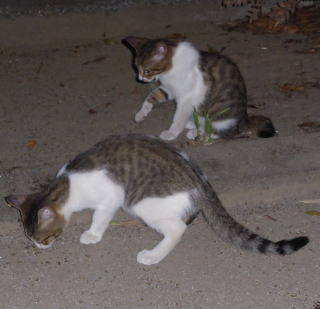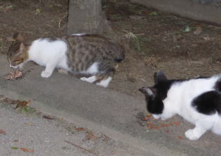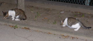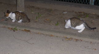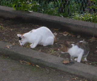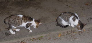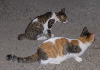 28.ココちゃんと三毛子ちゃん。100m走でもするのか?。