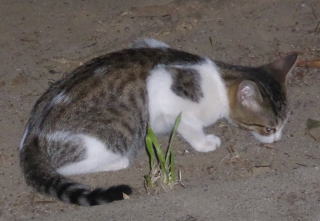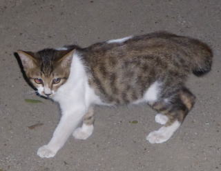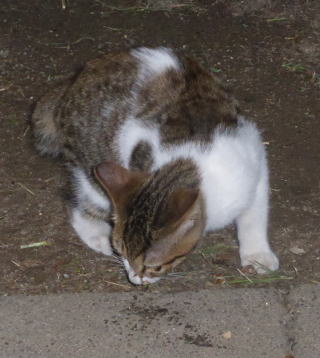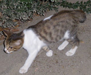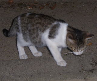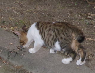 12.耳が大きく顔が小さく体格も小さく細いモモちゃん。ちょっとシンガプーラをイメージさせるけどシンガプーラみたいな珍獣は日本にそんなに数はいないだろうから色々な種類の猫が混血していると思うけど日本猫なんだろうね。ただこの体形でモモちゃんが純粋な日本猫かと言うとまた疑問符がついてしまう。