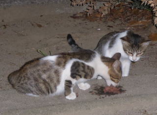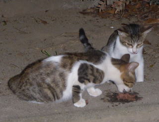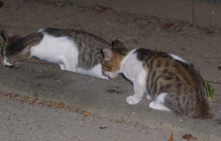 オクタヴィアンちゃんの縄張りで共存するココちゃん。モモちゃん。