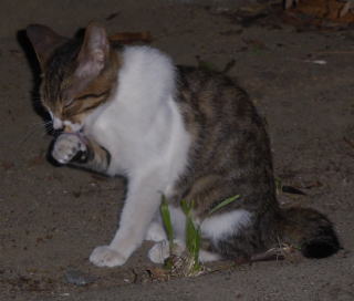 10.長尾のリボンちゃんはいつも尾をピンと伸ばしている。モモちゃんや百合子ちゃんみたいに尾を手に巻きつけたりはしない。父親があのドラ猫だから女の子でもあまり繊細じゃない性格なのかもしれない。