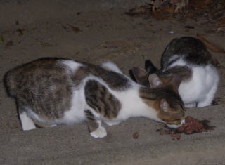 38.ココちゃんとモモちゃんがそろってご飯を食べる。