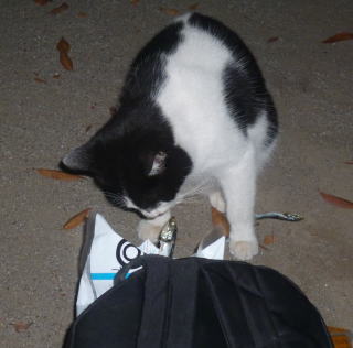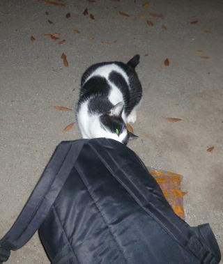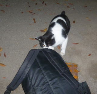 37.サバ子ちゃんは女の子。リュックに近づいたものの泥棒猫をする勇気がない。