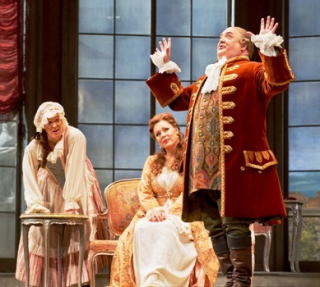 元帥夫人(32歳)の寝室。礼儀知らずのエロおやじのオックス男爵(35歳)が突然来訪。逃げ遅れた美少年オクタヴィアンがメイドに変装してお掃除のふりをしている。※オックス男爵は大柄なバスの歌手が演じる。おやじ臭さプンプンの女好きだが、どこか憎めない演技力が必要(悪人じゃなくてただスケベなだけ)。