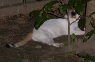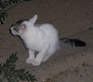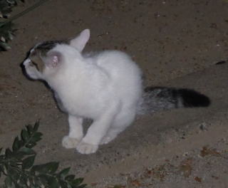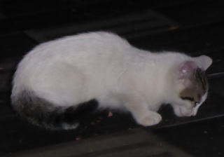 24.この子はバンの白三毛のリボンちゃんから茶毛が抜けて普通のバンの白猫になったのでしょう。体形はリボンちゃんソックリです。