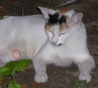 30.リボンちゃんのお腹に授乳して大きくなった乳首が目立つ。
