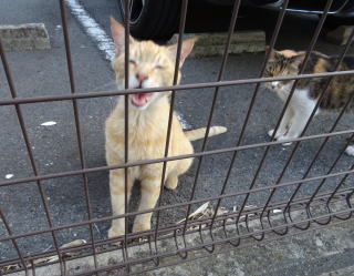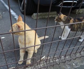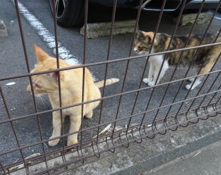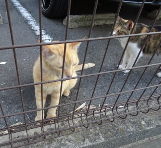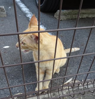 17.チャトランちゃんが鉄柵越しにパパに会いに来ました。日本猫にはない長い首をしています。長毛(ロング)なら豊かなライオンのタテガミもどきだったのに…。