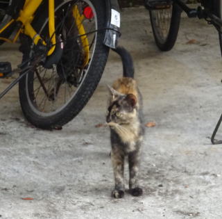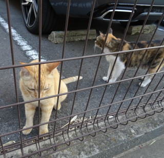 20.右にいるのがチャッピー君の妻の日本猫の三毛猫です。正確な年齢は不明ですが8~9歳以上なのでしょう。以前はチャッピー君と一緒にいたのに今はチャトランちゃんと親子の様に一緒にいます。仮に親子とすると父系(原種)が日本猫のチャッピー君から父系(原種)がメーン・クーン種のチャトランちゃんは産まれない事になります。ただし茶虎柄は共通します。父系(原種)がキジ虎のメーン・クーン種で母系(材料)の三毛猫の茶毛で置き換えられたと言う事でしょうか?。