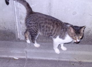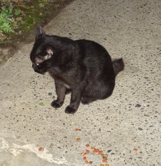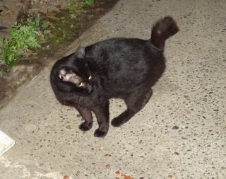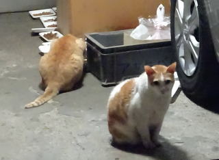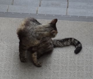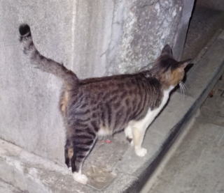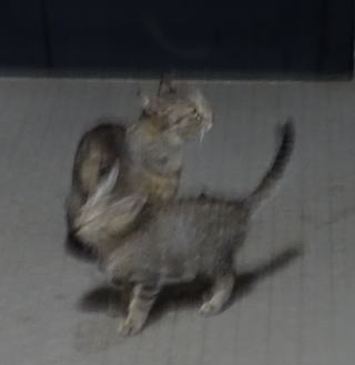 5.アン王女は家猫です。しかし実家を離れてパパの自宅の敷地内に住んでいる野良となっていました。この画像はピンボケではなくアン王女と子猫は激しく動いた事によります。