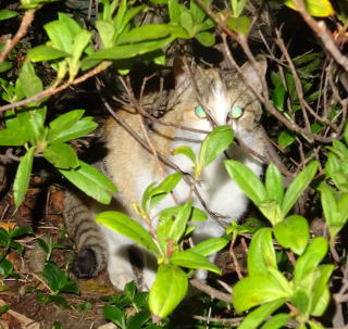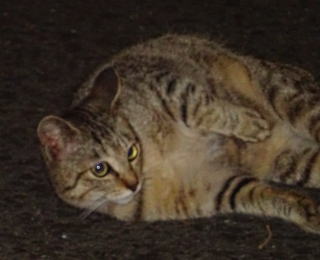 この画像は脇役1の21です。たぶんメーン・クーン種の1/2の血筋のチャトランちゃんも横長またはひし形の顔立ちです。ライオンのタテガミもどきもあり、アンナちゃんにはないリンクス・ティップ(山猫の耳毛)があります。家猫でなければパパが自宅に持ち帰ったのに…。