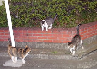 14.薄い色の三毛の子猫がいました。パパに「これ以上近づくな」と言っていたのでしょうか?。