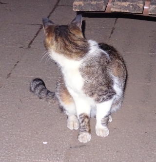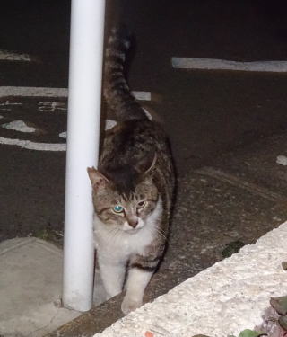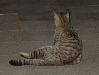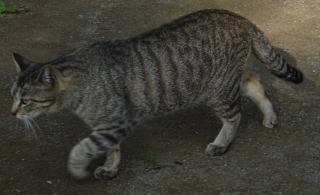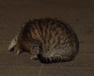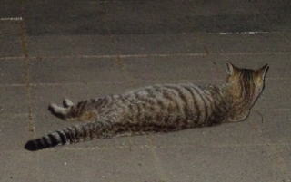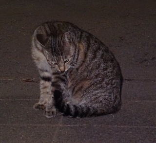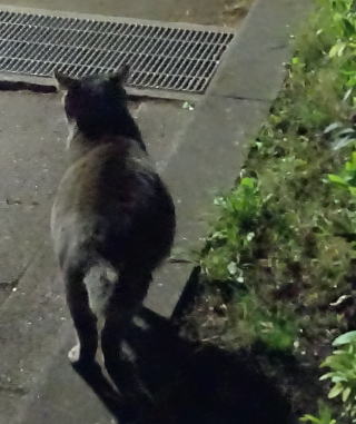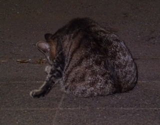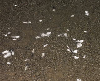 この画像は九郎ちゃん40の13です。狂暴な雄の黒猫の九郎ちゃんの縄張りの中では時々、鳩のバラバラ殺人事件がおこり鳩の羽が散乱していました。九郎ちゃんは鳩を襲って捕食していたんだ。