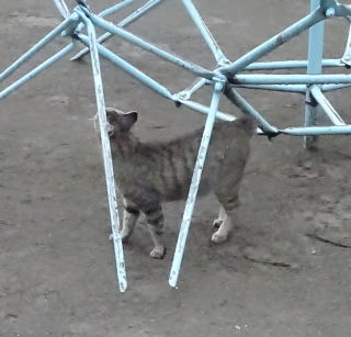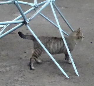 1.アンナちゃんはアポロ月面着陸船の様な公園の遊具にマーキングをしています。