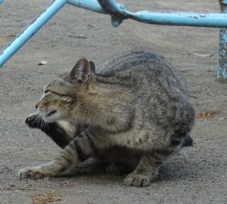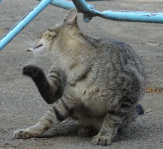 6.アンナちゃん。パパの前で毛繕いなんてするんじゃない。