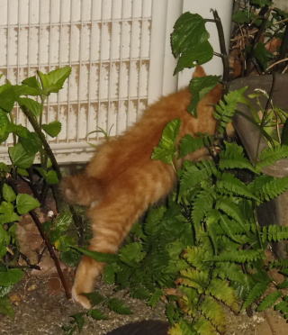 この画像は九郎ちゃん72の56です。何時までも茶虎の息子では味気ないので、この子を小太郎と名付けよう。ここは関東の東京です。関東を代表する忍者の風間の小太郎から名前をもらって小太郎としよう。