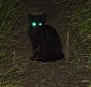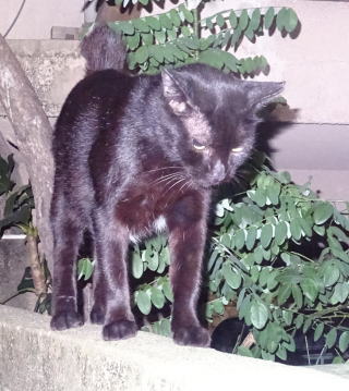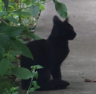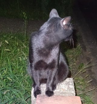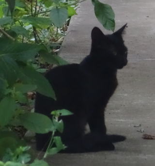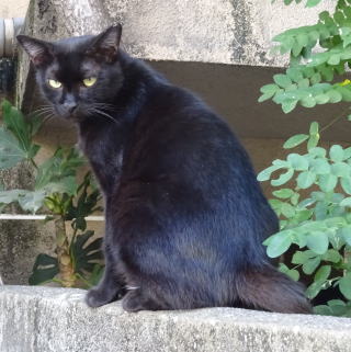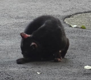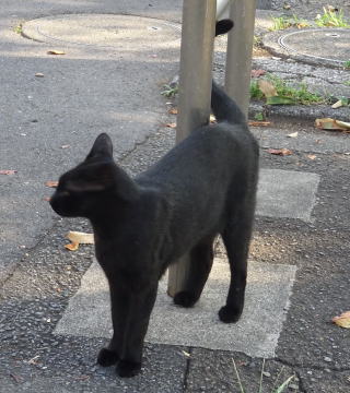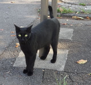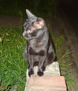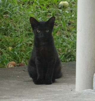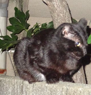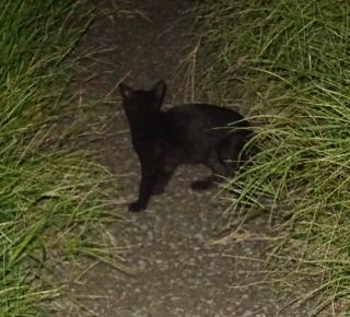 42.タヌキの里山から降りて100mと離れていない所にタヌキもどきの黒猫がいました。この子を(仮名)黒タヌキもどきAちゃんと名付けよう。