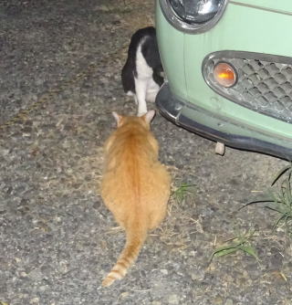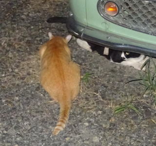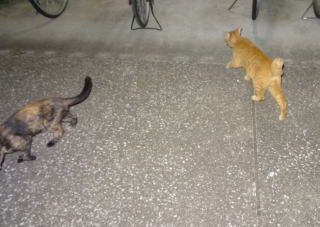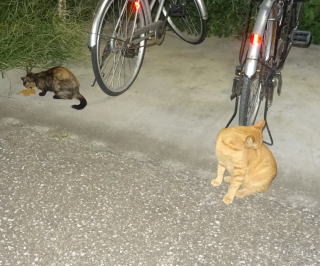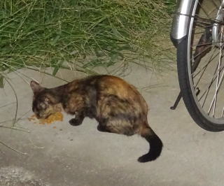 22.今でも忍ちゃんと小太郎ちゃんは姉弟として仲が良いです。忍ちゃんがキャット・フードを食べています。30代の小柄な女が置いているのを目撃した事がありますが、まさか自転車小屋の中にまであるとは驚きです。