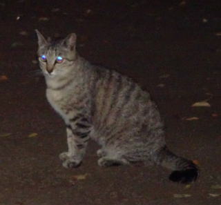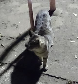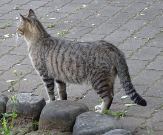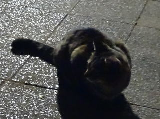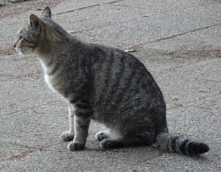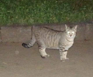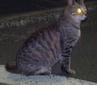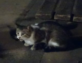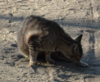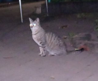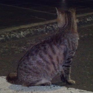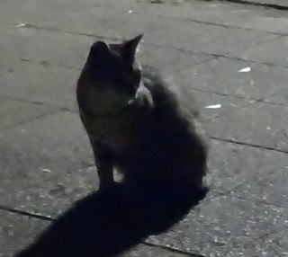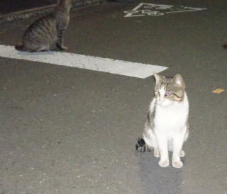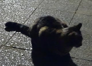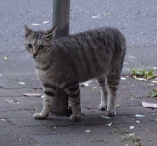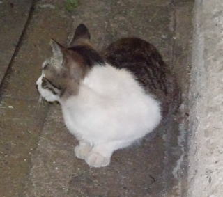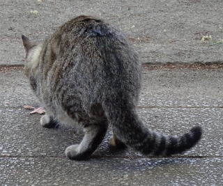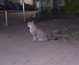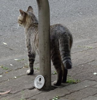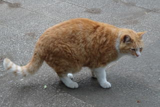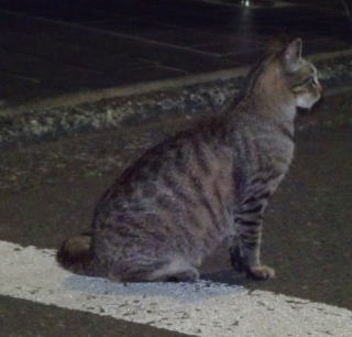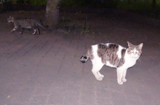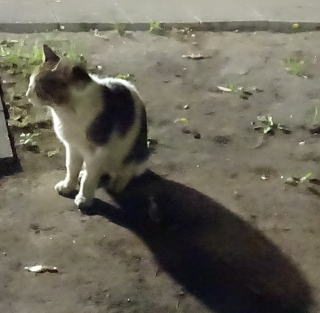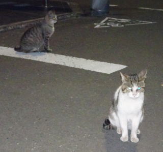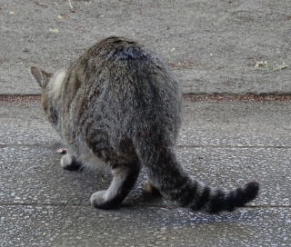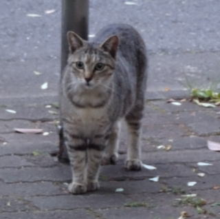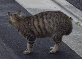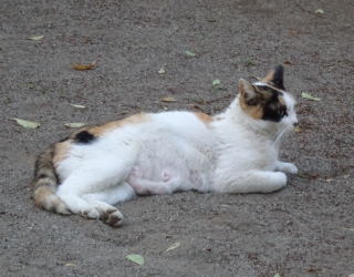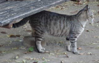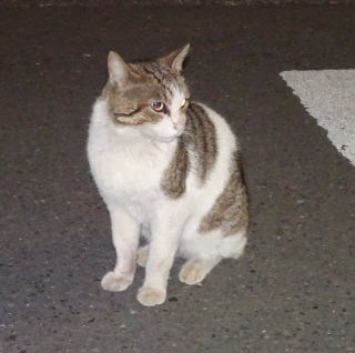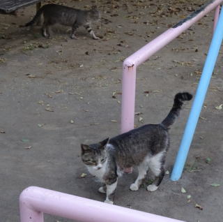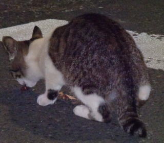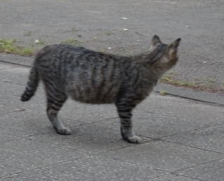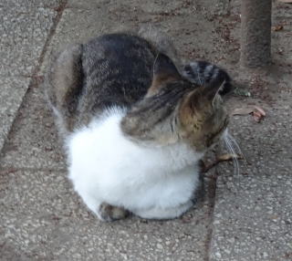 27.地域の雌のボス猫の茶子ちゃんは巨大ですね。しかしパパの前では大人しくしています。