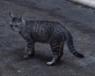 11.確かにこのクラシック・タビー柄の三毛猫は三毛珍獣ちゃんと同じプチ豪邸から出てきます。三毛珍獣ちゃんは腹部に数cmの避妊手術をした傷跡があります。この地域で完全な銀系クラシック・タビー柄の雌猫は三毛珍獣ちゃんの母親だけです。この女の子は三毛珍獣ちゃんの年の離れた妹の可能性が大きい様です。