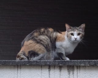 13.木上登子(きのうえたかこ)ちゃんが自宅の塀の上で座っています。