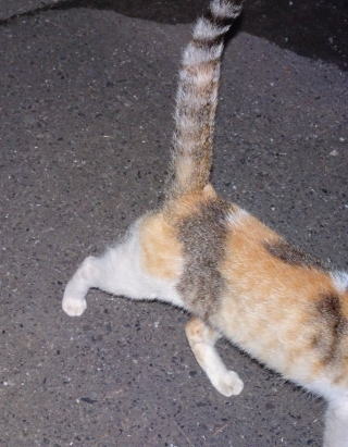 この画像は九郎ちゃん23の50です。雄猫が雌猫のお尻の匂いを直接嗅ぐのと違い、尾の匂いを嗅ぐのは人間に例えるとスカートめくりにあたるのでしょうか?。