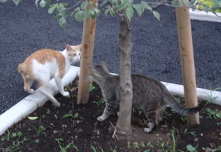 28.ドンナ・アンナちゃんはカンカンちゃんの様な成猫の雄にはしっかり鼻キッスをして挨拶をします。
