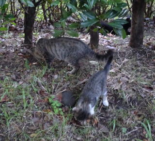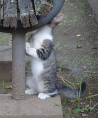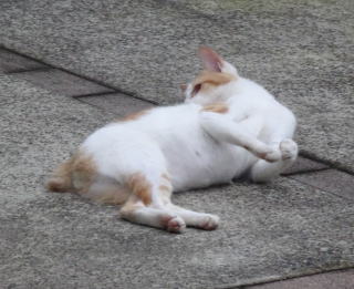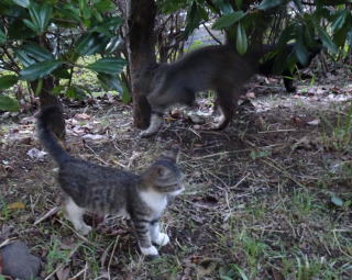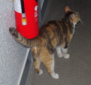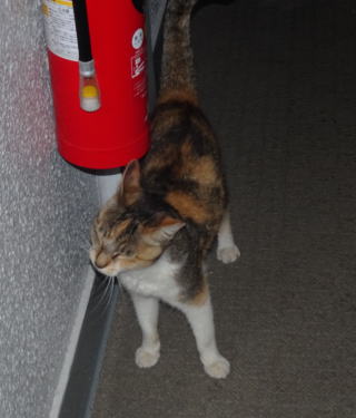 40.人間に例えると高校生くらいの若い雄猫。ひたすら雌猫の尾の匂いを嗅ごうと待機しています。人間の若い男性がスカートめくりに励むのと同じなのでしょうか?。