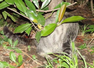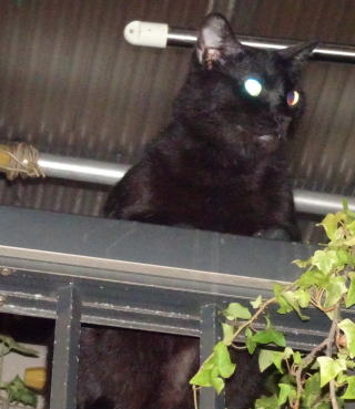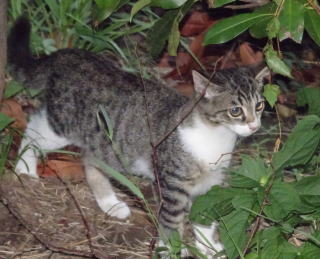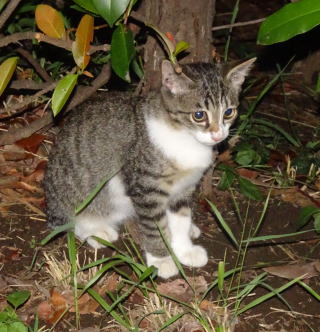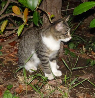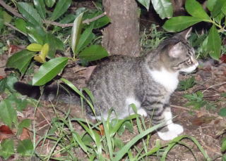 3.パパがいる時だけ姿を現します。恵奈ちゃんはメーン・クーン種の血筋を見出す事の出来ない雑種の子猫といいましたが、それでも顔立ちはアメリカ系の雌猫ですね。しかし首が長く胴体も長く短足なメーン・クーン種の体型ではありません。意外と手足が長い様に見えます。父系がそうだったのでしょうか?。