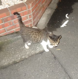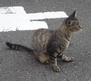 18.また茶虎の子猫に出会いました。前回はパパを見て警戒して逃げようとしましたが今回は平気の様です。