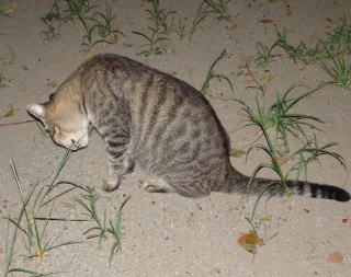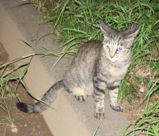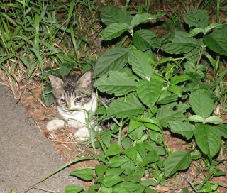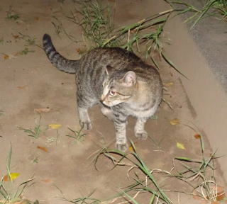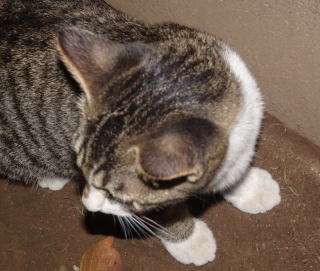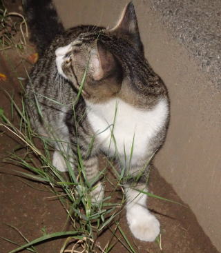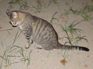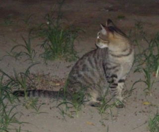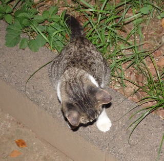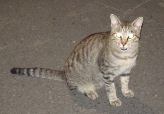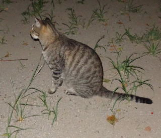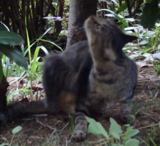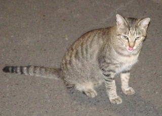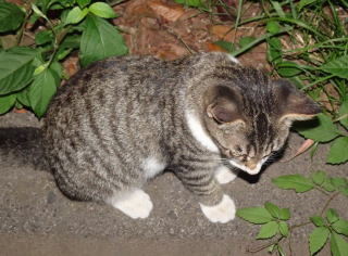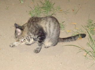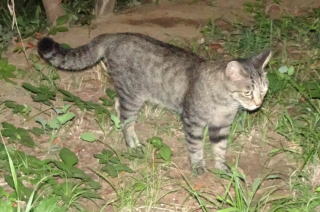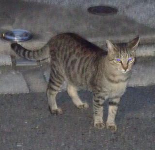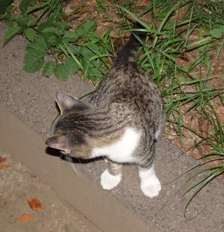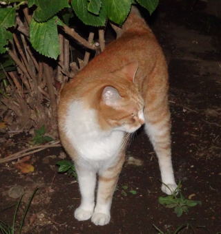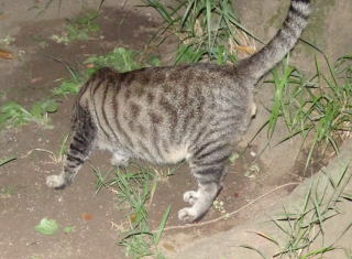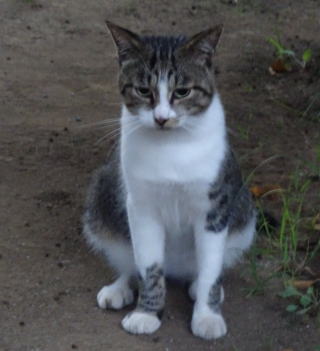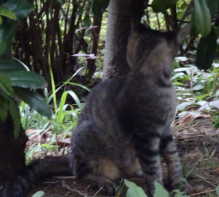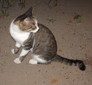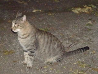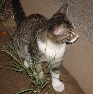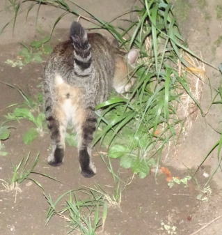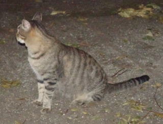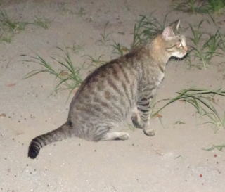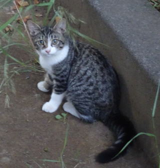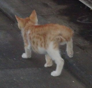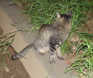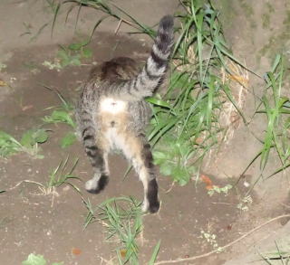 25.尾を見てください。アメリカン・ボブテイル種なら日本の関東地方のネコの様にL字形の鍵尾です。しかし短尾の直尾です。雑種なのですね。股間に玉があるかないかはこの画像からは確認できません。