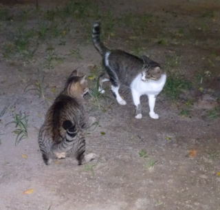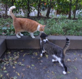 12.真から狂暴な雄の黒猫の九郎ちゃんや猛烈な雄の黒猫の烈ちゃんには生きているサンド・バックとして一方的にイジメられていた地域のボス猫の茶子ちゃんですが、普通の戦闘力の雄猫のクリスちゃん(キリスト教徒)は鼻キッスをして臣下の礼をとっています。人間の女性で茶子ちゃんの様な絶対的な強者がいたら名乗り出てください。パパが渾身一撃で首の骨を圧し折ってあげます。