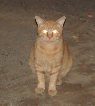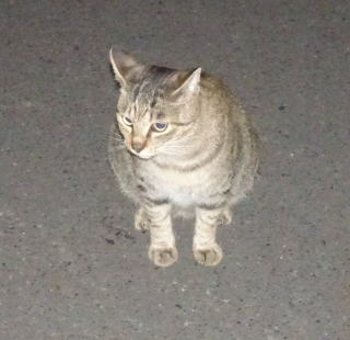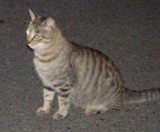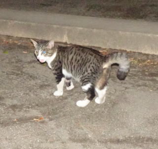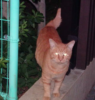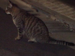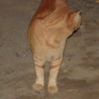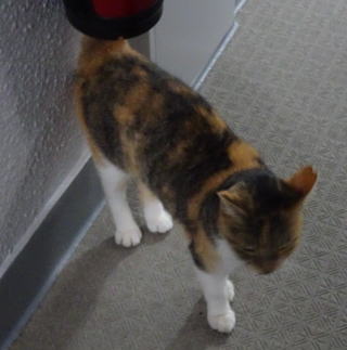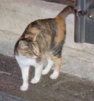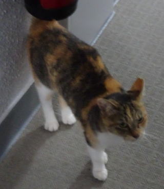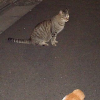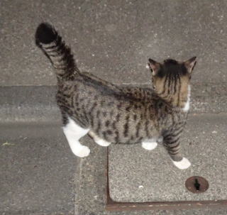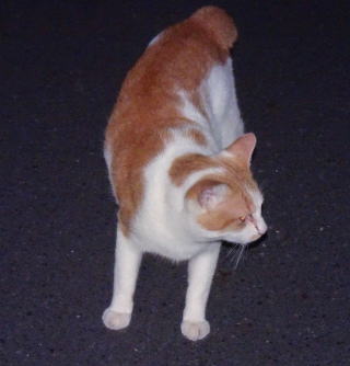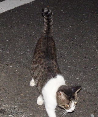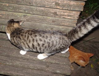 10.自称プリンセスの杏奈ちゃんの尾の匂いを嗅ぐ茶白の雄猫の登場に身構えた自称プリンセスの杏奈ちゃん。
