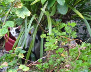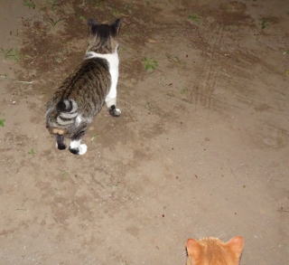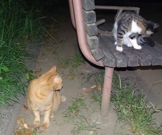 20.この関係は九郎ちゃんとキジ虎三姉妹との関係と一緒です。しかし今回は雑種のネコちゃんと雑種のネコちゃん同士です。どうなるのでしょうか?。